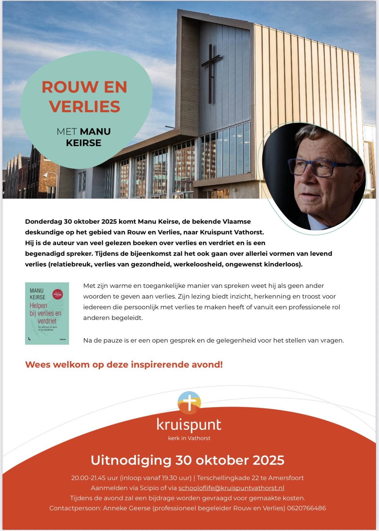 Manu is een bekende Vlaamse deskundige op het gebied van Rouw en Verlies, is auteur van veel gelezen boeken hierover en is een begenadigd spreker.